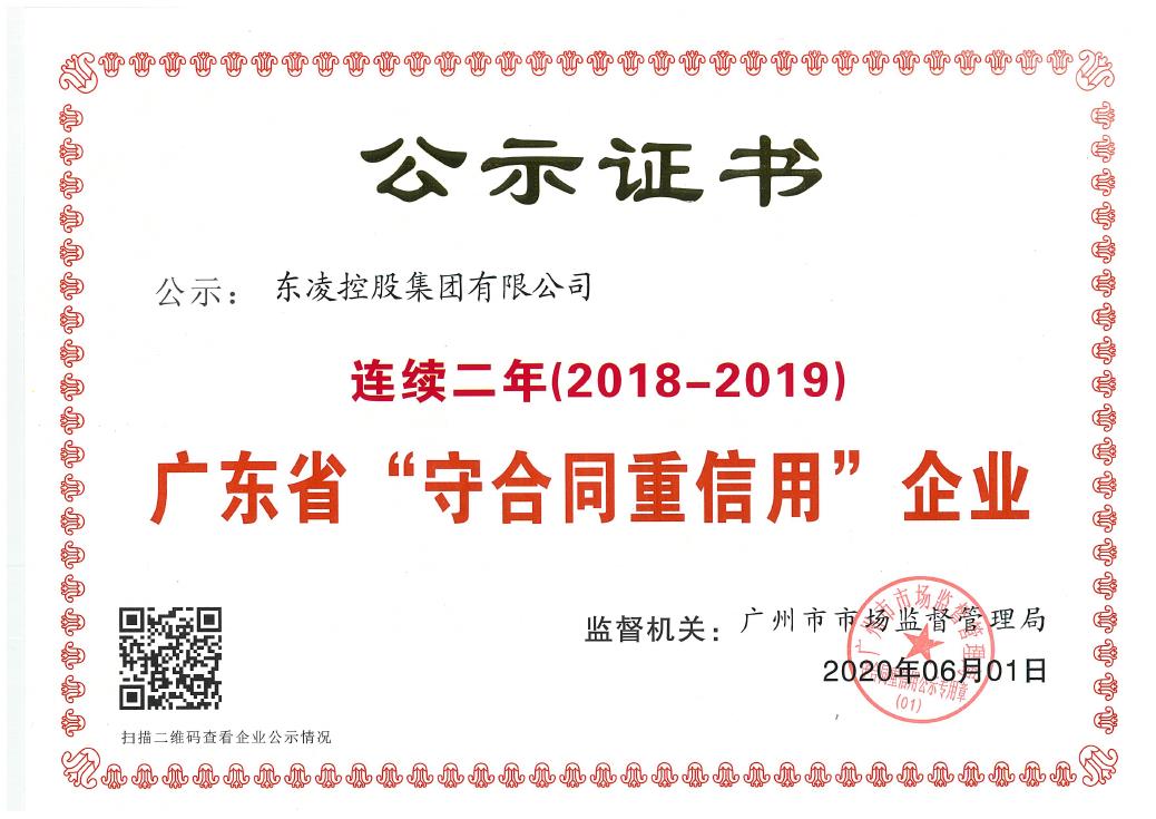 星空·(中国区)电子官方网站集团有限公司荣获:连续二年(2018—2019)广东省“守合同重