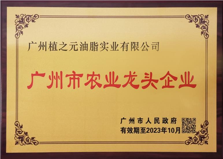 广州植之元油脂实业有限公司获评市农业龙头企业