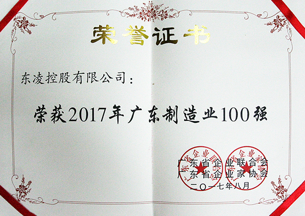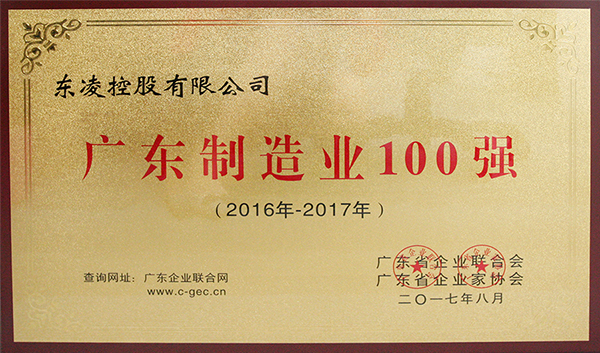 广东制造业100强证书