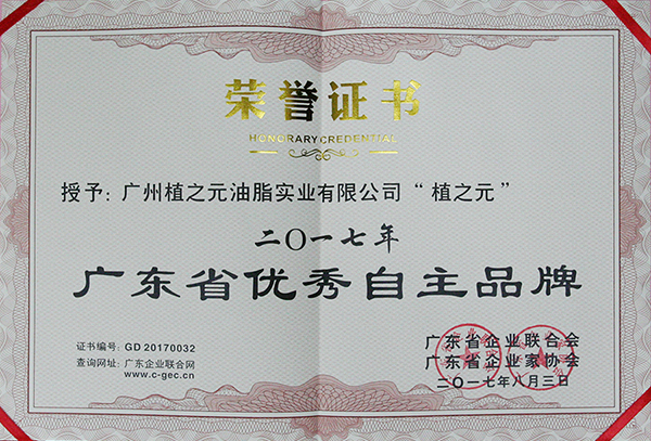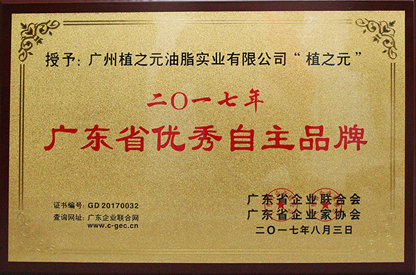 2017年广东省优秀自主品牌证书