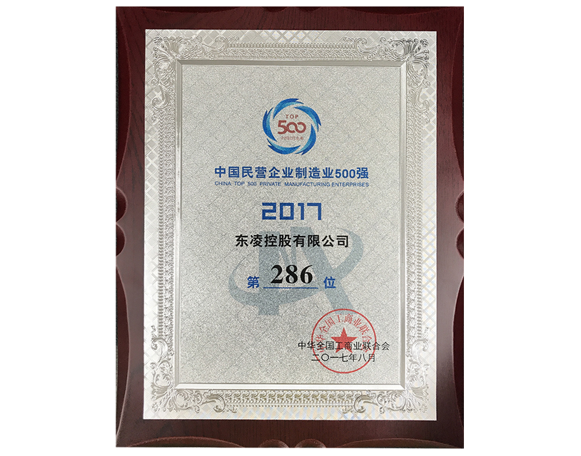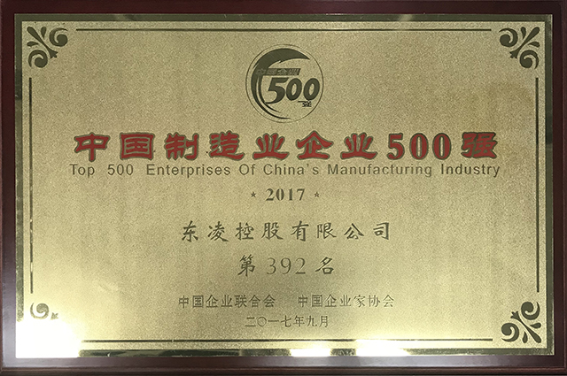 中国制造业企业500强证书