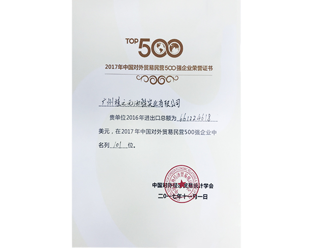 2017年广东企业500强证书