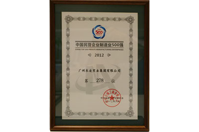 广州星空·(中国区)电子官方网站实业集团有限公司荣获国民营企业制造业500强--2012年