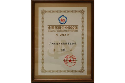 广州星空·(中国区)电子官方网站实业集团有限公司荣中国民营企业500强--2012年